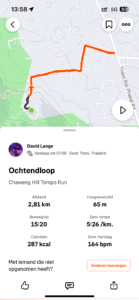The foundation of the plan is a short, consistent run that I do first thing in the morning. I don’t delay with brushing my teeth, making coffee, or taking supplements. I wake up and run. The route is always the same: The Chaweng Hill 2.8 kilometers, with the first half being downhill and the second half returning uphill. The total duration is short, which makes it sustainable to do almost every day, but the effort can vary significantly based on how I approach it.I follow a three-day rotation. Day one is a max-effort run, where I aim to push my limits and see how fast I can complete the Chaweng Hill. It is intense, especially during the final uphill segment. Day two is a controlled Zone 2 run, which functions as active recovery for the first day. I keep my heart rate around 145 bpm and focus on breathing. Day three is a walking session. This serves as a full recovery while still maintaining the habit and rhythm of morning movement.